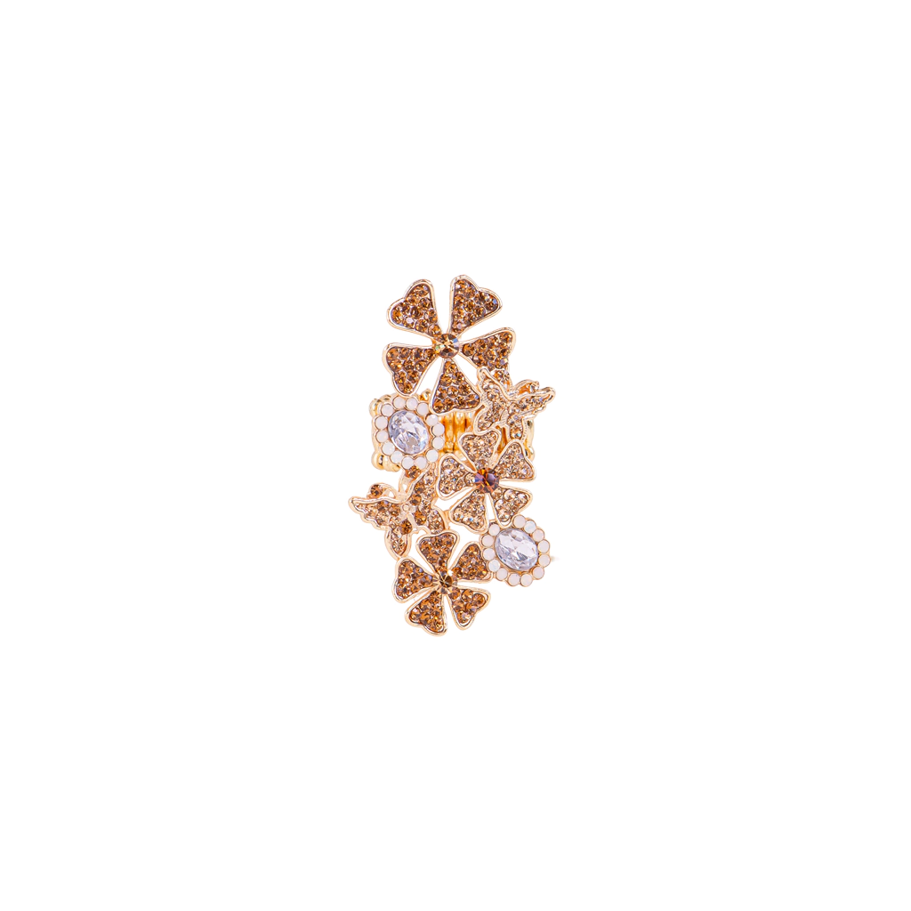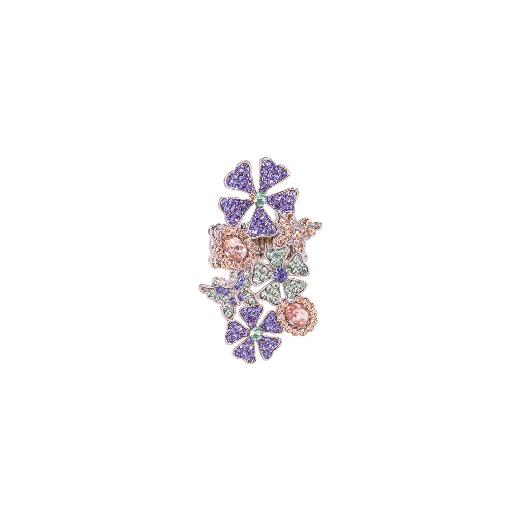 Delicadeza e brilho em uma peça encantadora. O anel é composto por uma combinação harmoniosa de flor e borboleta, totalmente cravejado com cristais que refletem a luz com intensidade e elegância. Um acessório perfeito para quem ama um toque romântico e sofisticado em qualquer ocasião.