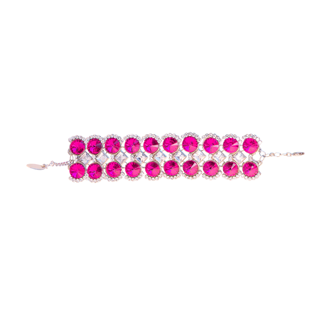 Pulseira cravejada de cristais com detalhes em pedras Rivoli que encantam pelo brilho e sofisticação. Cada cristal reflete a luz de forma delicada, enquanto as pedras Rivoli adicionam um toque de luxo e destaque ao design.